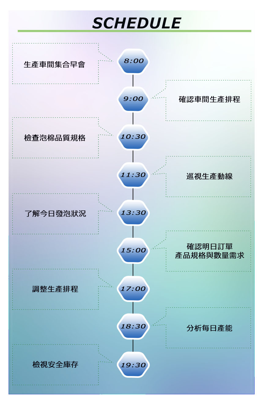 5. 與化工部溝通每日生產所需泡體